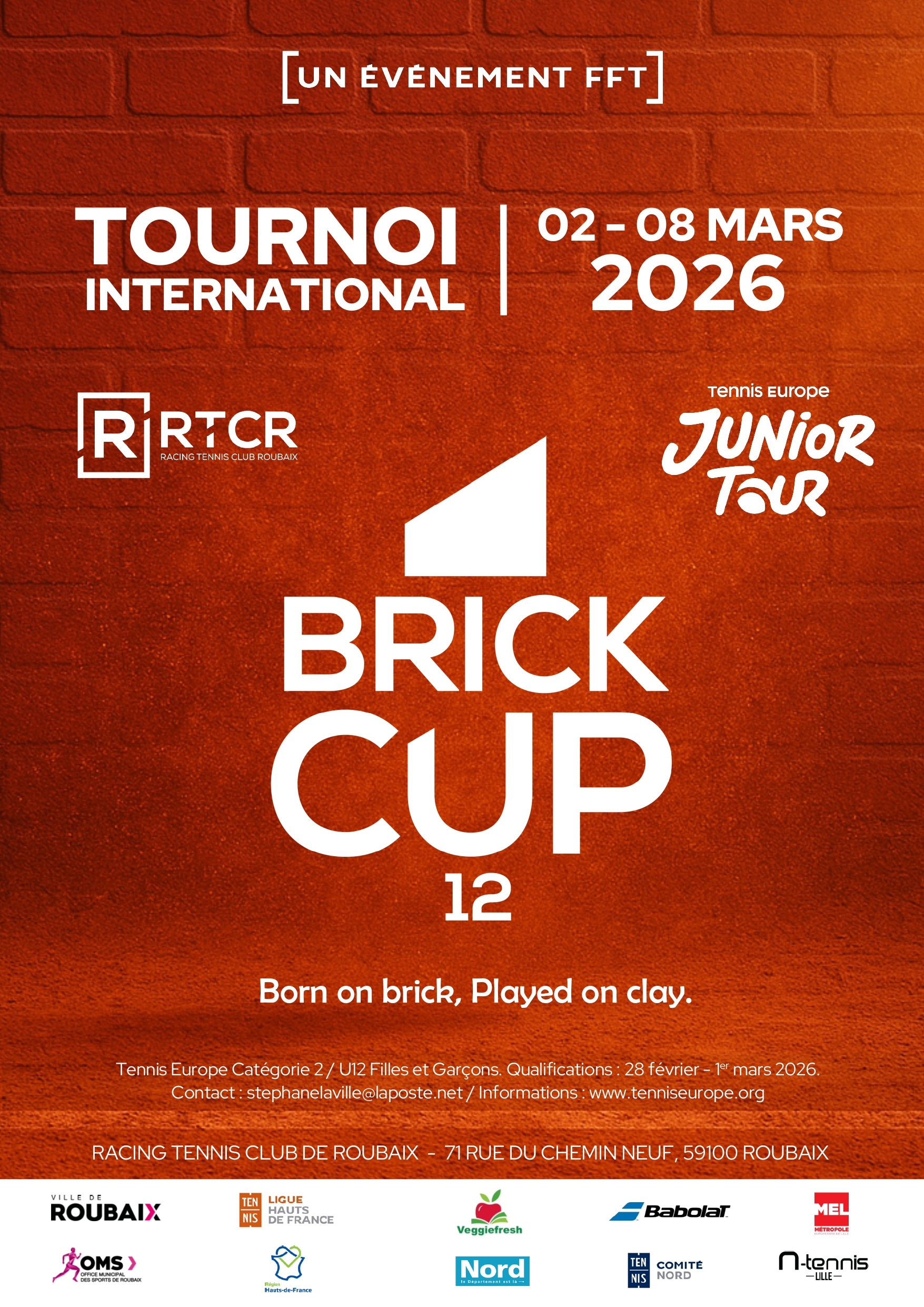 Le Racing Tennis Club de Roubaix est fier d’annoncer la première édition de la Brick Cup, un tournoi international de tennis moins de 12 ans, inscrit au circuit Tennis Europe Junior Tour.L’événement se déroulera du 2 au 8 mars 2026 au sein des installations du club.