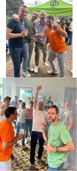 C’est bien la joie d’être ensemble, réunis par le partage d’une même passion, le tennis, et d’uneéthique commune, qui a dominé encore une fois le tournoi. C’est un esprit qui repose sur l’incommensurable bonheur de se retrouver chaque soir. C’est pourtant un plaisir simple, juste « un instant de bonheur », qui repose en réalité sur peu de choses : être ensemble donc, regarder les matchs – et ce, quel que soit le niveau de tennis, du premier tour à la finale –, vaquer d’un bord de terrain à un autre, d’une discussion à une autre, hésiter entre une bière ou un rosé et finalement jeterson dévolu sur un Chardonnay. Sortir un paquet de biscuits apéro de son sac, comme un énième partage. Se demander si ce soir on prendra une salade chez LoubatiRacing, ou si on craquera pour le burger-frites. Ou encore tenir une permanence avec les copains ou les copines, préparer de beaux terrains et les regarder avec une certaine fierté. Encourager ses partenaires de jeu, discrètement quand l’adversaire joue aussi au Racing, mais avec une certaine ferveur quand il ne l’est pas ou que le derby s’en mêle. Regarder le soleil s’éclipser entre les hauts toits roubaisiens et les terrains extérieurs, et admirer la magistrale et poétique fusion orangée du coucher de soleil et de la terre battue et s’entendre dire « on est bien, là… ».