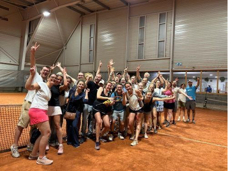 Cette année, les joueurs et joueuses ont particulièrement été bichonnés : bananes à discrétion (103 kg au total, merci à notre partenaire VeggieFresh), bons de réduction chez N’Tennis le partenaire du Racing, jeu de fléchettes pour réconforter les perdants (ou pas) avec notre partenaire OOSLO, des terrains refaits entre chaque set et un livescore inédit,permettant de suivre les matchs en direct du fin fond de son lit quand un troisième set emmène joueurs, joueuses et permanents jusqu’au début de la nuit. Toute cette organisation n’étant bien sûr pas possible sans Christian notre JA préféré, aussi souriant que conciliant, ainsi que des coachs et permanentsexceptionnels. Ces derniers venant même parfois dès l’aube pour nourrir les terrains de terre, tels desmarchands de sable bien matinaux, ou arroser les fleurs au crépuscule.
